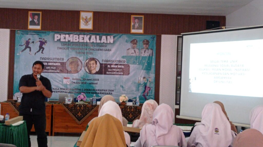 Hal itu diungkapkan oleh sutradara dan juga Direktur Art Film Picture Aziz Arifianto dalam kegiatan Pembekalan Lomba Video Konten Literasi Kabupaten Banjarnegara, yang digelar Selasa (10/6/2025) di Aula Niscala Perpustakaan Daerah Banjarnegara.
