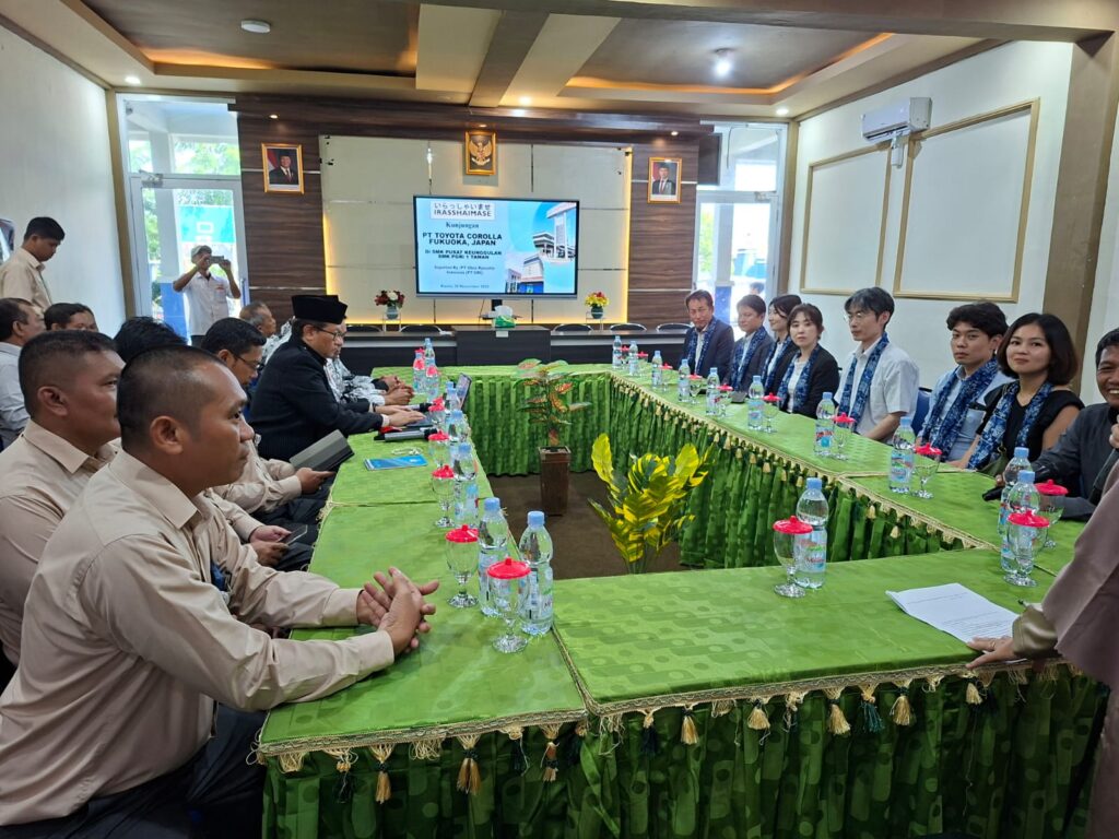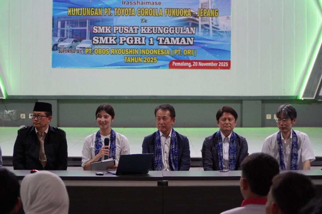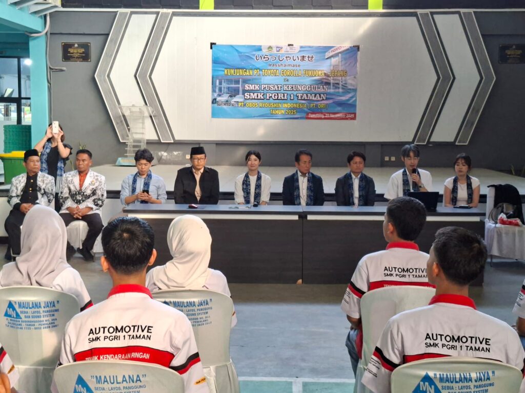 Pemalang, derapguru.com – Pada hari kamis, 20 November 2025 SMK PGRI 1 Taman kedatangan tamu dari Jepang, yaitu dari PT Toyota Fukuoka Jepang dan manajemen dari IPM Japan dan ACE Japan. Juga penerjemah dan support dari PT Obos Ryoushin Indonesia (PT ORI). Tamu dari Jepang ini total berjumlah 7 orang, dari Toyota Corolla Fukuoka Corporation 3 orang yakni: Mr. Akihiko Rissen (Managing Executive Officer), Mr. Hideaki Abe (Manager), Mrs. Chika Fukae (Chief); dari IPM (International Personel Management) Japan 2 orang yakni Mr. Hokuto Tsushima (Manajer), Mrs. Toshimi Motoyama (Deputy Secretary General), dari ACE Japan ada 1 orang yakni Mr. Yoshiki Muta (Managing Director); 1 orang pendamping, 1 orang penerjemah bahasa Jepang, Yaya Kartawijaya (Director Ace Indonesia Sukses); 2 orang dari PT ORI yakni Mr. Takeshi dan Mr. Hari Candra. Demikian diungkapkan oleh Kepala SMK PGRI 1 Taman, H. Yanto Raharjo, S.Si., M.A kepada derapguru.com melalui telephone selulernya, Sabtu 22 November 2025.
