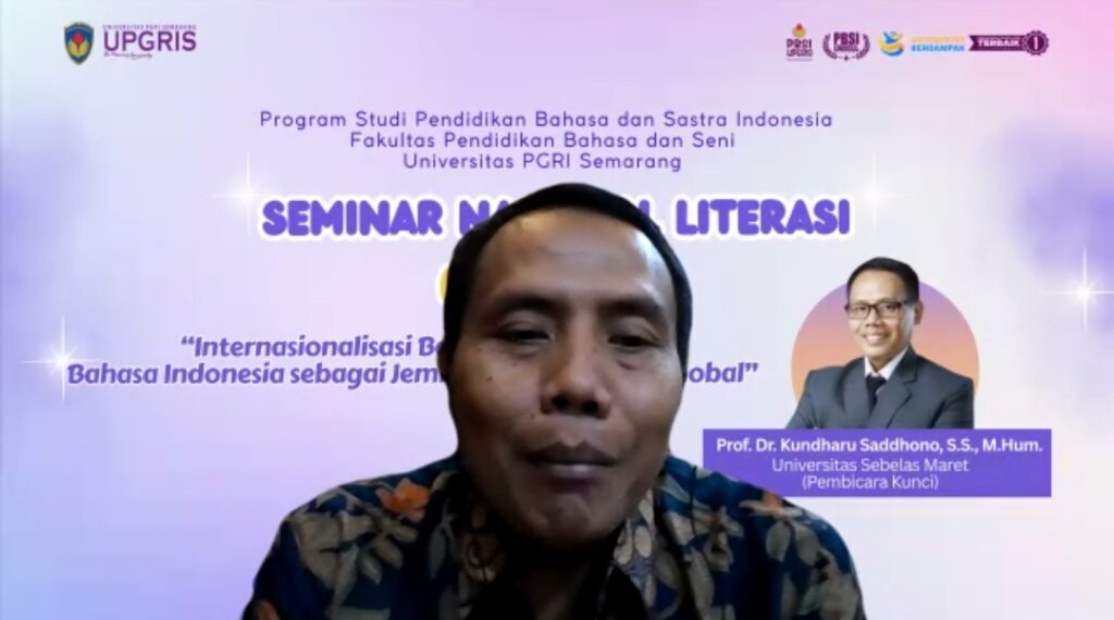 Hal tersebut disampaikan Pakar BIPA dari Universitas Sebelas Maret (UNS), Prof Dr Kundharu Saddhono MHum, dalam Seminar Nasional Literasi IX (Semitra IX) yang digelar Prodi PBSI FPBS UPGRIS secara daring, Rabu 8 Oktober 2025.