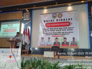 Derapguru.com-Semarang, 10 April 2025 – Dalam suasana penuh kehangatan Idul Fitri 1446 H, Bupati Semarang H. Ngesti Nugraha, S.H., M.H. menegaskan komitmennya terhadap integritas dan transparansi di sektor pendidikan serta pemerintahan, saat memberikan sambutan dalam Halalbihalal Keluarga Besar PGRI Kabupaten Semarang yang mengangkat tema “Menguatkan Silaturahmi dan Sinergitas Menuju Pendidikan Berkualitas”.
