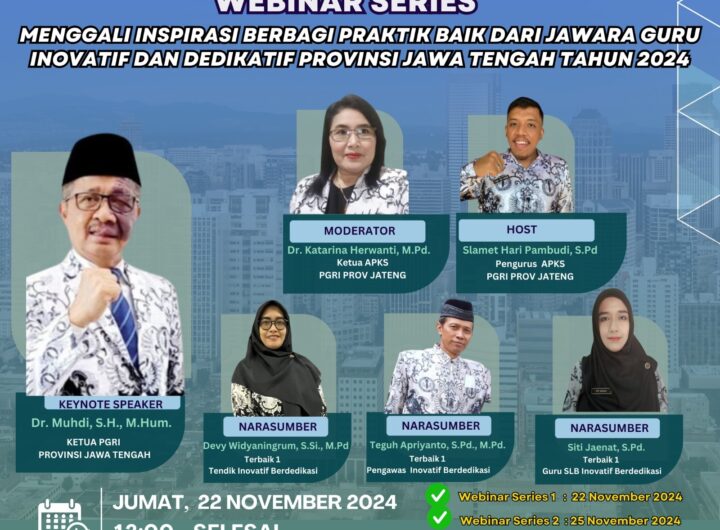 APKS PGRI Jateng Selenggarakan Webinar Series: Menggali Inspirasi Berbagi Praktik Baik dari Jawara Guru Inovatif dan Dedikatif Provinsi Jawa Tengah Tahun 2024 BERITA D’15Detik D’PGRI APKS PGRI Jateng Selenggarakan Webinar Series: Menggali Inspirasi Berbagi Praktik Baik dari Jawara Guru Inovatif dan Dedikatif Provinsi Jawa Tengah Tahun 2024 admin derap 20 November 2024 Semarang, derapguru.com. Dalam rangka memperingati HUT ke-79 PGRI dan HGN tahun 2024, Asosiasi Profesi dan Keahlian Sejenis...Read More