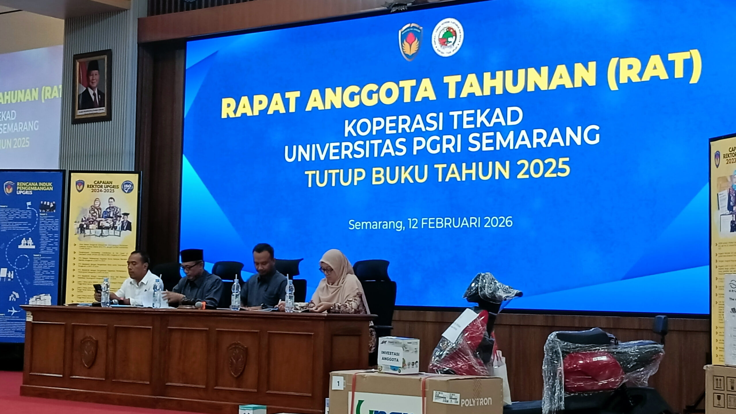SEMARANG, derapguru.com — Ada-ada saja yang dilakukan Danang Aji Setyawan MPd, Dosen PJKR UPGRIS, saat dapat undian sepeda listrik dalam Rapat Anggota Tahunan (RAT) Koperasi Tekad UPGRIS di Auditorium Room 7fl Menara UPGRIS Kampus Cipto Semarang, Rabu 12 Februari 2026.