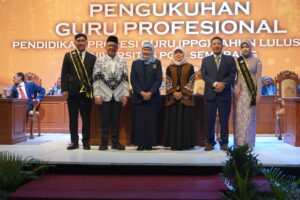 SEMARANG, derapguru.com. Universitas PGRI Semarang pada hari Sabtu (5/10) mengukuhkan 475 Guru Profesional Pendidikan Profesi Guru (PPG) tahun lulus 2024. Acara yang berlangsung di Balairung tersebut dihadiri ribuan keluarga wisudawan. Ketua PGRI Jawa Tengah yang juga Pembina YPLP PT PGRI Semarang, Dr Muhdi SH MHum saat memberikan sambutan menyampaikan selamat dan mendoakan para wisudawan lolos menjadi ASN semua. “Mulai tahun depan kalian semuanya sudah menjadi ASN dan menerima tunjangan profesi di samping gajinya,” ujar Dr Muhdi yang baru saja dilantik menjadi anggota DPD dan MPR RI periode 2024-2029 itu. “Bagi yang sudah punya istri/suami gunakan untuk kepentingan keluarga dan sisihkan seperti kata Bu Rektor untuk pengembangan profesi.”tambah Dr Muhdi. “Sekali lagi selamat dan jangan berhenti belajar dan harapan dari PGRI kalau sudah jadi guru jangan lupa menjadi anggota PGRI agar kita bisa bersama-sama menjaga profesionalisme dan bersama-sama menjaga hak-hak para guru kita,”pungkas Dr Muhdi.