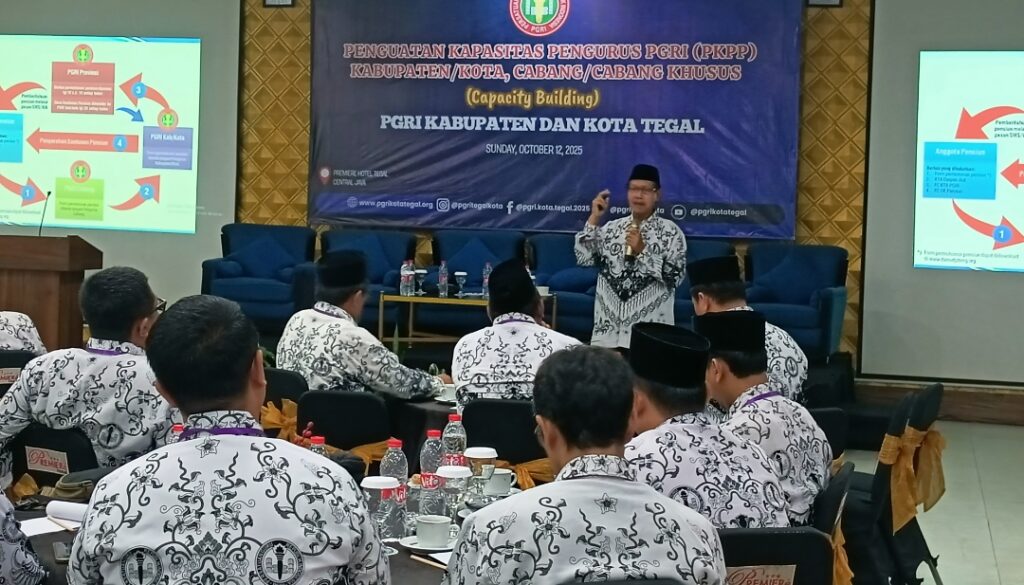 “Yang senior pasti tahu. Senior itu (rata-rata) orang-orang lama, pasti kenal beliau,” pancing Sakbani dalam acara Penguatan Kapasitas Pengurus (PKP) PGRI Kota Tegal dan PGRI Kabupaten Tegal di Premiere Hotel Kota Tegal, Minggu 12 Oktober 2025.