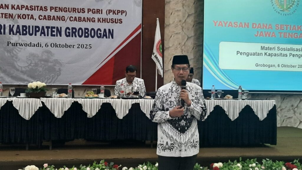 Salam solidaritas PGRI tersebut menggema dalam berbagai kegiatan PGRI. Tapi banyak yang belum memahami makna “hidup” dalam salam solidarritas PGRI. Demikuan diungkapkan Wakil Ketua PGRI Jateng, H Sakbani SPd MH saat menjelaskan “Unit Daspen” dalam acara PKP PGRI yang berlangsung Senin 6 Oktober 2025 di Hotel Kyad Grand Master Purwodadi, Kabupten Grobogan.
