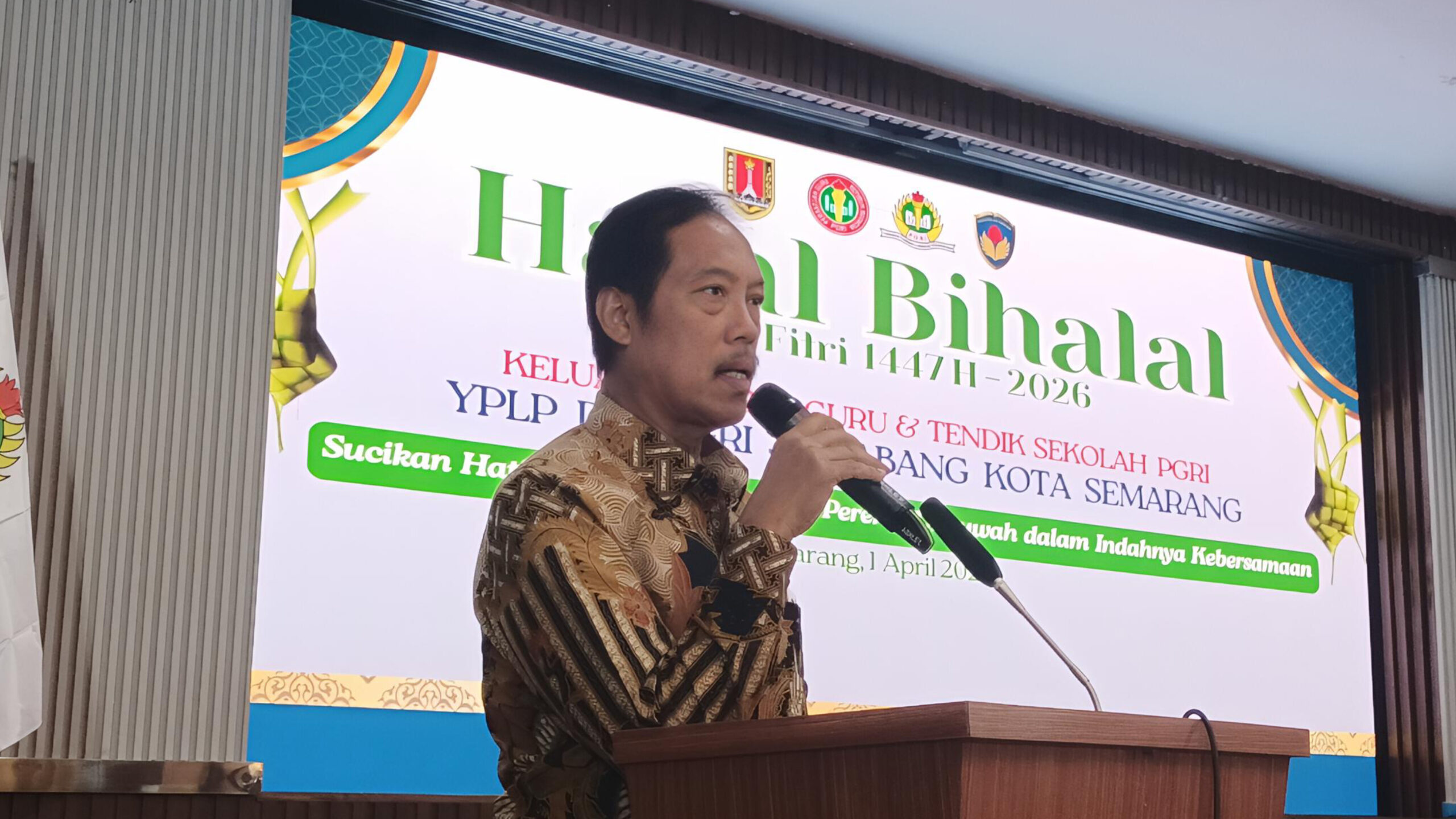 “Menyemarakkan hari lebaran, kami Pengurus PGRI Provinsi Jawa Tengah, yang secara langsung maupun tidak langsung berelasi dengan Bapak-Ibu. Apabila kami dalam memberikan layanan masih kurang memuaskan, kami sampaikan permohonan maaf yang sebesar-besarnya,” ungkap Sutikno.