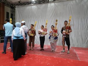 Di Amphi Theater UPI, cabang Tari Tunggal menghadirkan suasana berbeda. Cahaya kuning panggung menyorot siluet Ahmad Saroji, yang kemudian menutup penampilannya dengan meraih Harapan III. Penonton duduk berlapis di tangga amphiteater, sebagian mengabadikan momen lewat ponsel, suasana yang lebih hening dibanding arena olahraga.