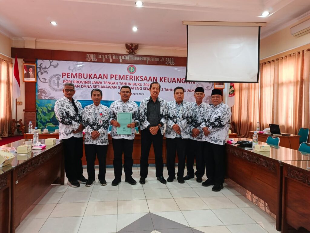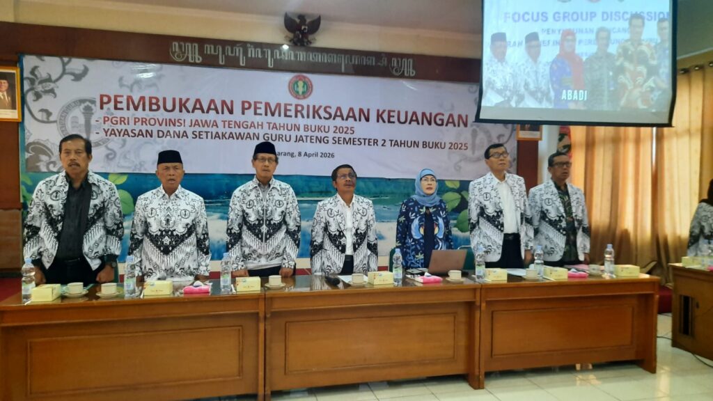 Semarang, derapguru.com-Sesuai keputusan organisasi PGRI Jawa Tengah akan menyelenggarakan Konferensi Kerja Provinsi tahun kedua MB XXIII di Balairung Universitas PGRI Semarang, 25-26 April 2026. Terkait dengan itu perlu dilakukan pemeriksaan keuangan PGRI Jawa Tengah oleh perwakilan pengurus PGRI Kabupaten/kota. Pemeriksaan keuanagn ini adalah bentuk pertanggung jawaban organisasi, sebelum pelaksanaan Konkerprov PGRI Jawa Tengah. Untuk itu, pengurus yang telah ditunjuk sebagai pemeriksa diharapkan bisa melakukan pemeriksaan dengan sungguh-sungguh, cermat dan teliti. “Pemeriksaan keuangan PGRI Jawa Tengah ini adalah bentuk pertanggung jawaban organisasi, sebelum pelaksanaan Konkerprov PGRI Jawa Tengah”, ujar Ketua PGRI Jateng, Dr Muhdi SH M Hum saat membuka acara pemeriksaan keuangan PGRI Jateng dan keuangan Danset, di gedung PGRI Jalan Lontar, Rabu 8 April 2026.