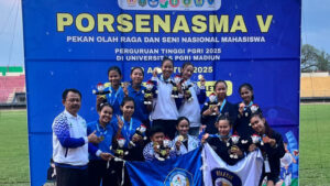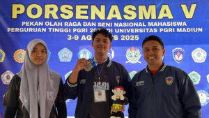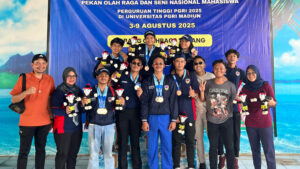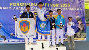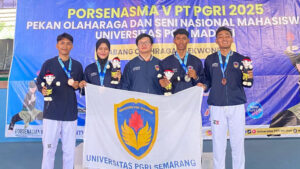 SEMARANG, derapguru.com — Tim Porsenasma UPGRIS memperoleh total medali terbanyak kedua dari seluruh peserta Porsenasma. Tapi karena sampai hari kedua belum berhasil meraih Medali Emas, Tim Porsenasma UPGRIS harus tertahan di posisi 8 klasmen sementara.