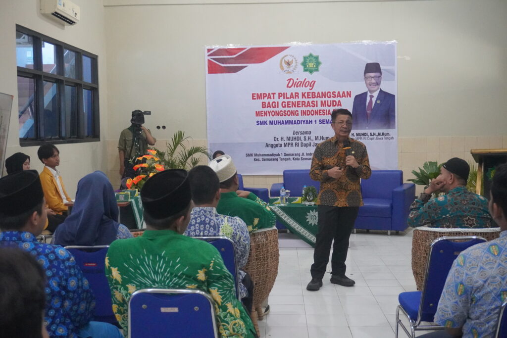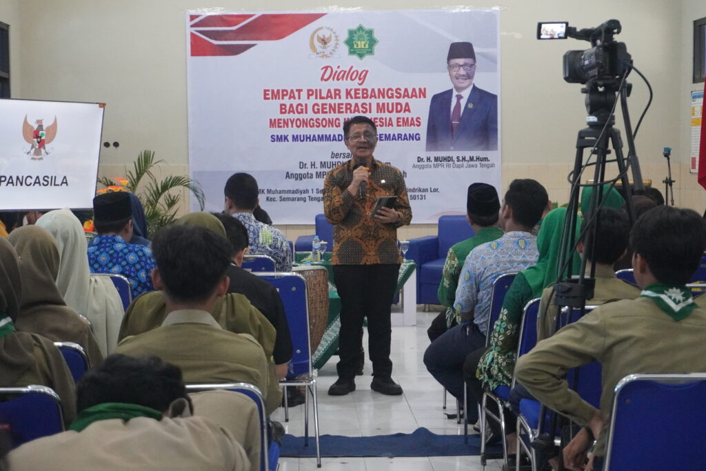 Semarang, derapguru.com – Anggota MPR RI Dr. H. Muhdi, SH., M.Hum melaksanakan kegiatan Sosialisasi 4 Pilar Kebangsaan di SMK Muhammadiyah 1 Semarang, Kamis (11/12/2025). Kegiatan yang berlangsung di Aula SMK Muhammadiyah 1 Semarang, Jalan Indraprasta No. 37, Pindrikan Lor, Semarang Tengah, ini diikuti oleh guru, pengurus OSIS, dan siswa sebagai peserta aktif.