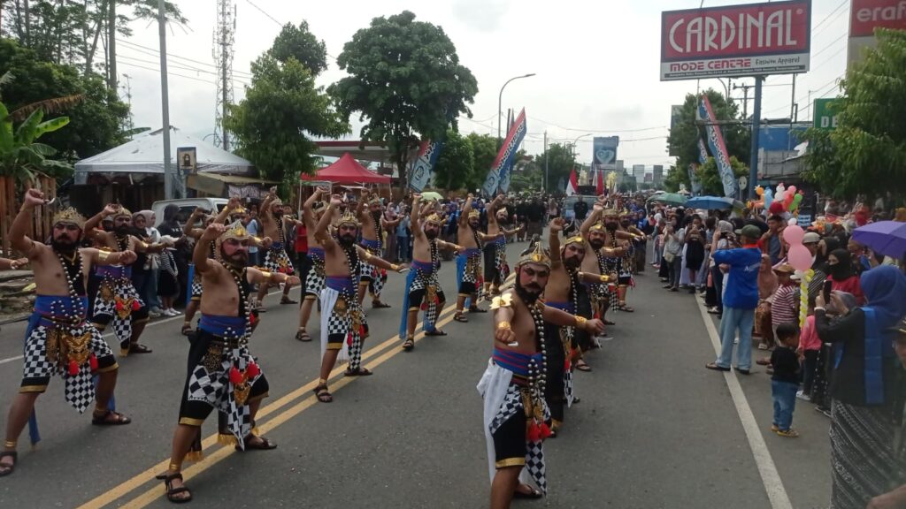 Banjarnegara, derapguru.com-20 penari Bima dengan muka sangar dan gagah mampu memesona ribuan warga yang memadati gelaran Kirab Budaya dalam rangka Hari Jadi Banjarnegara ke 455, yang berpusat di Alun-alun Banjarnegara, Rabu 2 April 2026.