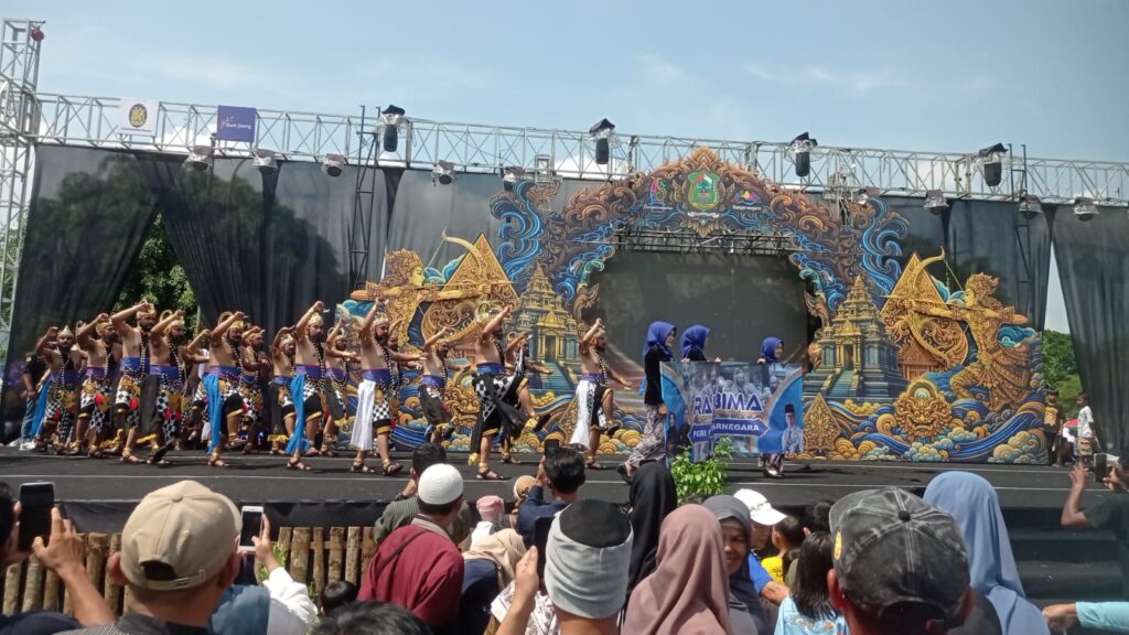 Di tengah Alun-alun Banjarnegara, panggung besar menghadap utara menyambut setiap kontingen yang melakukan performance art. Bupati dan Forkompinda tampak menikmati setiap sajian pertunjukan setiap kontingen dari panggung yang menghadap ke selatan, termasuk penampilan Rampak Bima dari PGRI Banjarnegara.