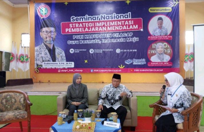 Derapguru.com – Cilacap, 8 November 2025 – Persatuan Guru Republik Indonesia (PGRI) Kabupaten Cilacap sukses menyelenggarakan Seminar Nasional Strategi Implementasi Pembelajaran Mendalam hari ini di Gedung Guru Dwijaloka, Jalan Kalimantan, Cilacap. Kegiatan yang mengusung tema sentral “Guru Bermutu Indonesia Maju” ini merupakan wujud nyata komitmen PGRI dalam upaya peningkatan kualitas dan kompetensi guru di Kabupaten Cilacap.