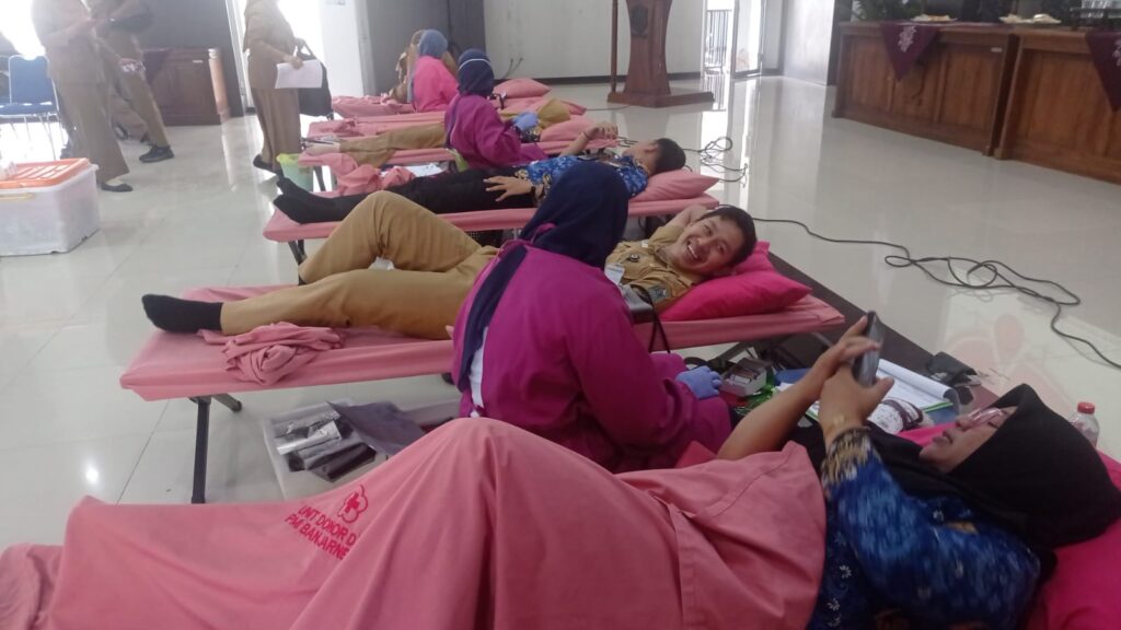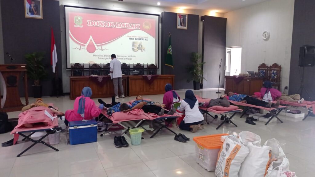 Banjarnegara, derapguru.com – Memeringati HUT Korpri ke 54, HUT PGRI ke 80 dan Hari Guru Nasional tahun 2025, Korpri dan PGRI Banjarnegara berkolaborasi menggelar kegiatan donor darah, Senin (01/12/2025) di Aula Setda Banjarnegara.