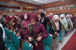 SEMARANG, derapguru.com. Rektor Universitas PGRI Semarang Dr Sri Suciati MHum pada Sabtu (5/10) mengukuhkan 475 Guru Profesional Pendidikan Profesi Guru (PPG) tahun lulus 2024 di Balairung UPGRIS. Dalam sambutannya Rektor mengucapkan selamat kepada Dr Muhdi SH MHum, Pembina YPLP PT PGRI Semarang yang juga Direktur Pengembangan dan Evaluasi Lamdik yang baru saja dilantik menjadi DPD dan MPR RI. “Sertifikat pendidik sebentar lagi dibagikan kepada saudara-saudara pesan yang pertama hati-hati menyimpan sertifikat pendidik karena sertifikat ini diperoleh dengan penuh perjuangan,”ujar Rektor.