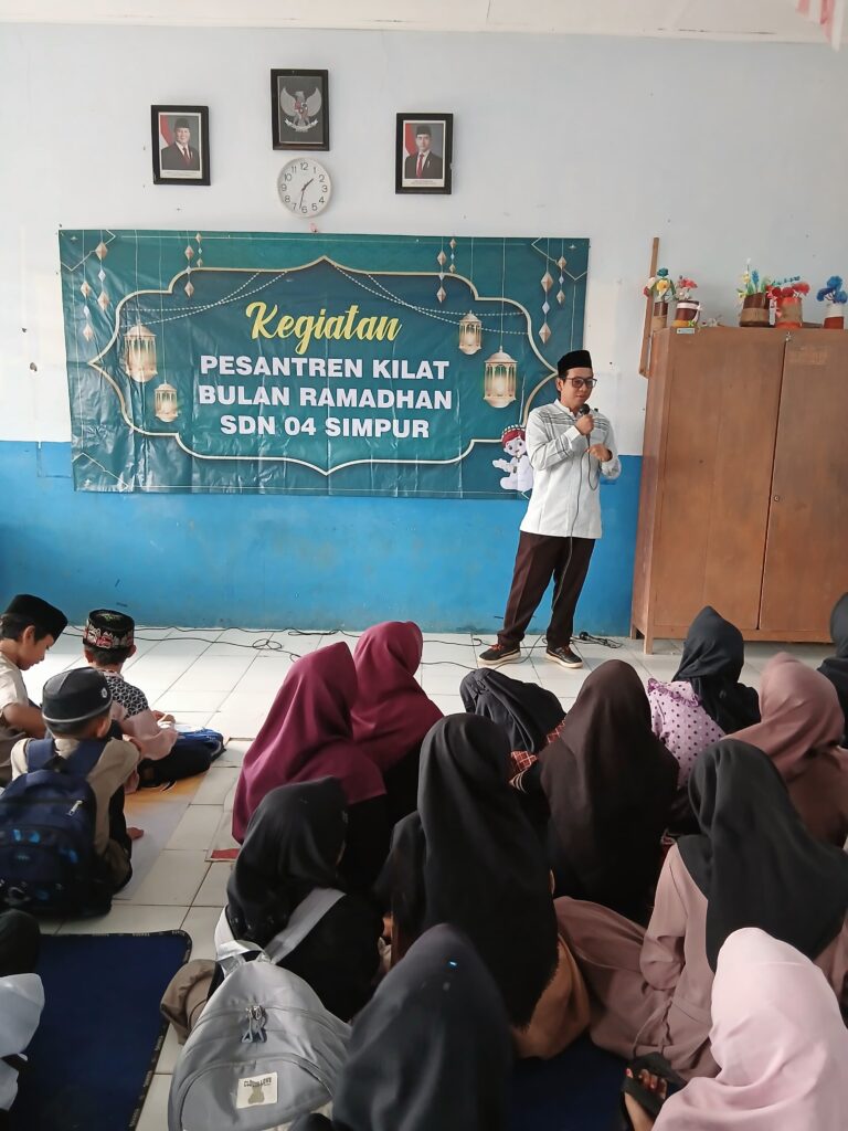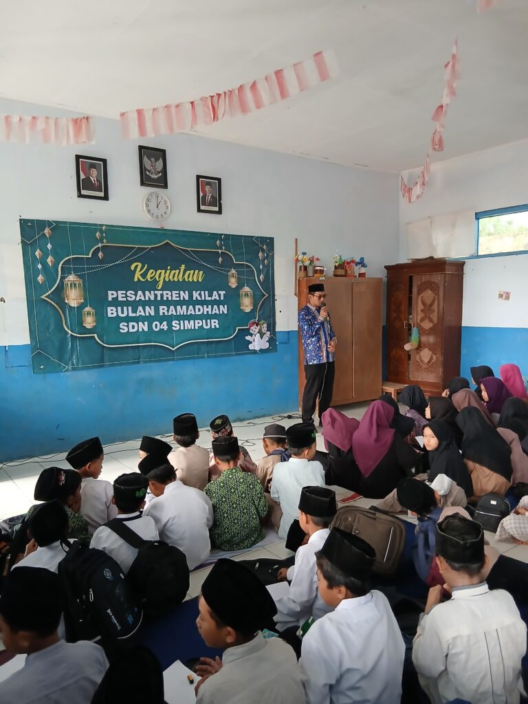 Dikatakan, kegiatan pesantren kilat ini secara resmi dibuka oleh Plt. Kepala SDN 04 Simpur, Sudaryo, S.Pd. Dalam sambutannya beliau menyampaikan harapannya agar kegiatan ini dapat menjadi sarana bagi siswa untuk meningkatkan pemahaman agama sekaligus membiasakan diri dalam menjalankan ibadah selama bulan Ramadan.