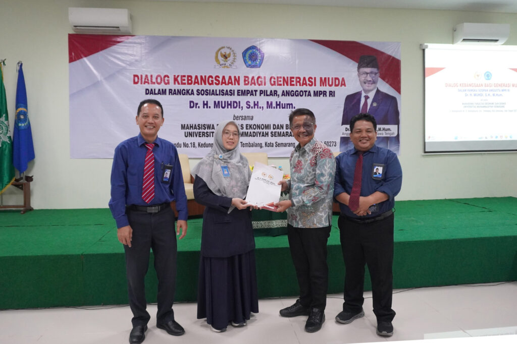 Pesan tersebut disampaikan Anggota MPR RI yang juga Wakil Ketua Komite I DPD RI, Dr H Muhdi SH MHum, saat memberikan materi Sosialisasi 4 Pilar Kebangsaan di Kampus Universitas Muhammad Semarang (Unimus), pagi tadi.