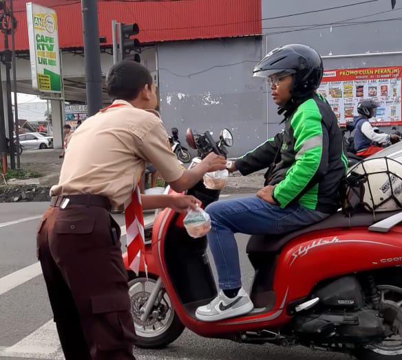 Puluhan anggota Dewan Ambalan Pramuka SMK Al Fatah berseragam lengkap berkumpul di pertigaan Samsat Banjarnegara, Selasa (18/3/2025). Berbekal kardus, mereka tampak membagikan sesuatu kepada pengguna jalan ketika lampu merah menyala. Jam menunjukkan pukul 16.00, masih terlalu siang untuk berbuka puasa tentunya. Namun takjil yang dibagikan hanya dalam waktu kurang dari setengah jam sudah ludes. Tawa ceria mereka terlihat jelas, puas berbagi dengan sesama.