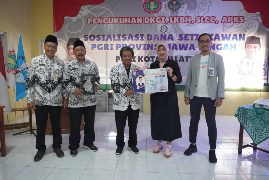 Sebelumnya Ketua PGRI Kota Salatiga Fahrudin Saeful Huda SPd MM, mengungkapkan bahwa acara pokok hari ini adalah pengukuhan perangkat kelengkapan organisasi. “Di samping itu juga ada penandatanganan MoU dengan badan usaha,”ujar Saeful. “Dengan menggandeng BNI 46, KTA PGRI bisa berfungsi multipayment. Bisa digunakan untuk belanja, membayar parkir, membayar tol, dll,“tambah Saeful. “Kami juga bekerja sama dengan Luwes Swalayan sehingga anggota PGRI mendapat diskon barang barang tertentu,”pungkas Saeful.