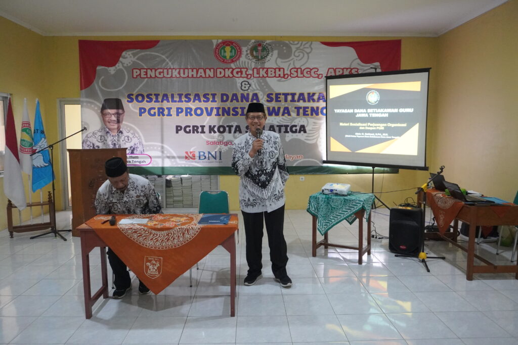 Salatiga, derapguru.com. Hari Guru yang diperingati setiap tanggal 25 November merupakan hari lahir PGRI. “Jadi kalau ada Kepala Daerah melarang peringatan hari ulang Tahun PGRI bisa kuwalat,” ujar Ketua PGRI Provinsi Jawa Tengah Dr Muhdi SH M Hum saat membuka acara Pengukuhan Perangkat Kelengkapan Organisasi, Penguatan Organisasi dan Sosialisasi Yayasan Dana Setiakawan Guru Jawa Tengah bertempat di SMA N 1 Salatiga (28/5). Selanjutnya Dr Muhdi mengingatkan agar pengurus yang lebih senior jangan berkecil hati apabila pengurus era sekarang mengembangkan PGRI sesuai tantangan jaman. Yayasan Dana Setiakawan Guru Jawa Tengah merupakan karya pendahulu PGRI yakni Drs. Karseno sebagai bentuk solidaritas kepada anggota. “Hanya di Jawa Tengah guru pensiun atau meninggal teman teman sejawat memberikan santunan sebagai bentuk solidaritas,”tambah Dr Muhdi. “Solidaritas PGRI Jawa Tengah pun dibuktikan sebagai satu satunya PGRI di Indonesia yang selalu berhasil menghantarkan kadernya dalam pemilihan anggota DPD RI sejak 2004,”pungkas Dr Muhdi yang juga wakil Ketua Komite I DPD RI itu.